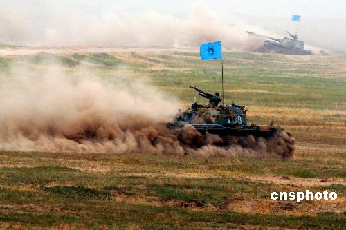 中新社洮南九月二十五日电 (记者 陶社兰)“勇士-二00七”实兵实弹演习今天在沈阳军区洮南训练基地举行。来自上海合作组织和东盟成员国以及美、英、法、日等三十五个国家的五十五名军事观察员,观摩了这次演习。